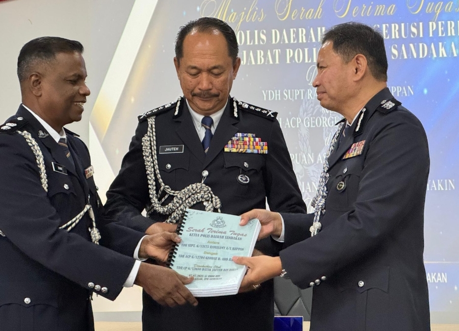 Majlis Serah Terima Tugas berlangsung di Ibu Pejabat Polis Daerah (IPD) Sandakan, hari ini, dan disaksikan Pesuruhjaya Polis Sabah, Datuk Jauteh Dikun.