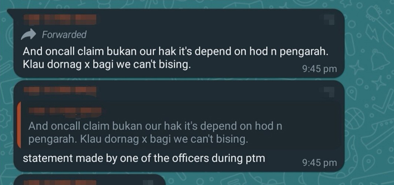 “Tak adil untuk kata doktor kontrak tidak hak tuntut (bayaran) ‘on-call’ kerana kami bekerja keras. Mesti ada imbuhan untuk kami kerana bekerja sebegitu lama.