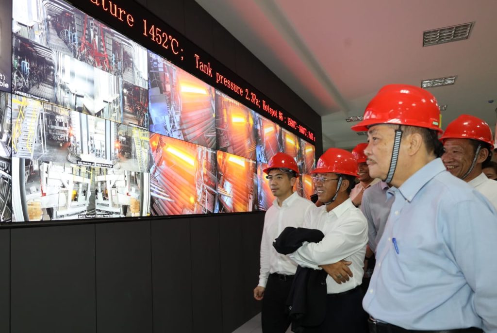Kilang pengeluaran SBH Kibing New Solar Energy (M) Sdn Bhd ketika ini mengeluarkan 1,200 tan kaca solar setiap hari yang akan digandakan kepafa 2,400 tan sehari bermula bulan ini. – Info X