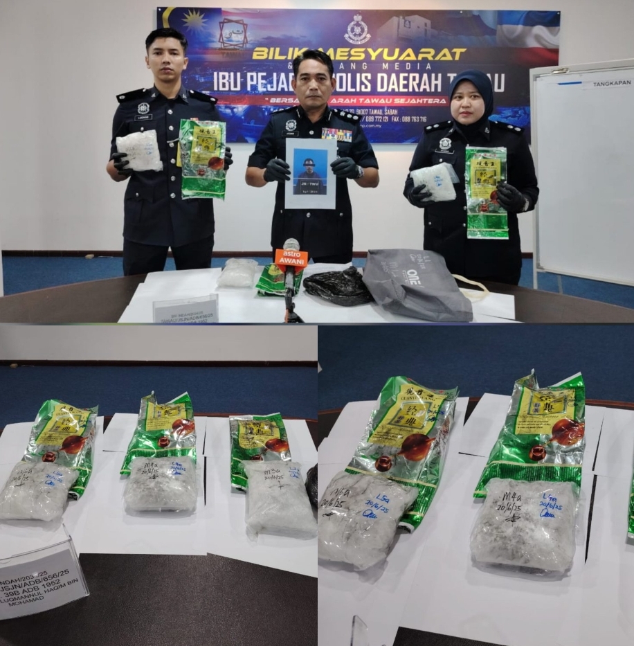 “Suspek kemudian menunjukkan lokasi beg yang dibuang dan pihak polis menemukan tiga bungkusan teh bertulisan ‘Guanyinwang’ berwarna hijau,” katanya dalam sidang media di IPD Tawau, di sini, hari ini.