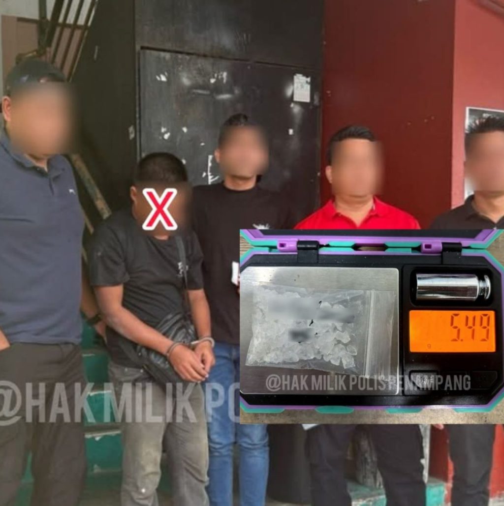 “Hasil pemeriksaan ke atas suspek, polis menemui satu peket lutsinar berisi ketulan hablur jernih disyaki dadah jenis Methamphetamine (syabu) seberat 5.49 gram dalam simpanan suspek.