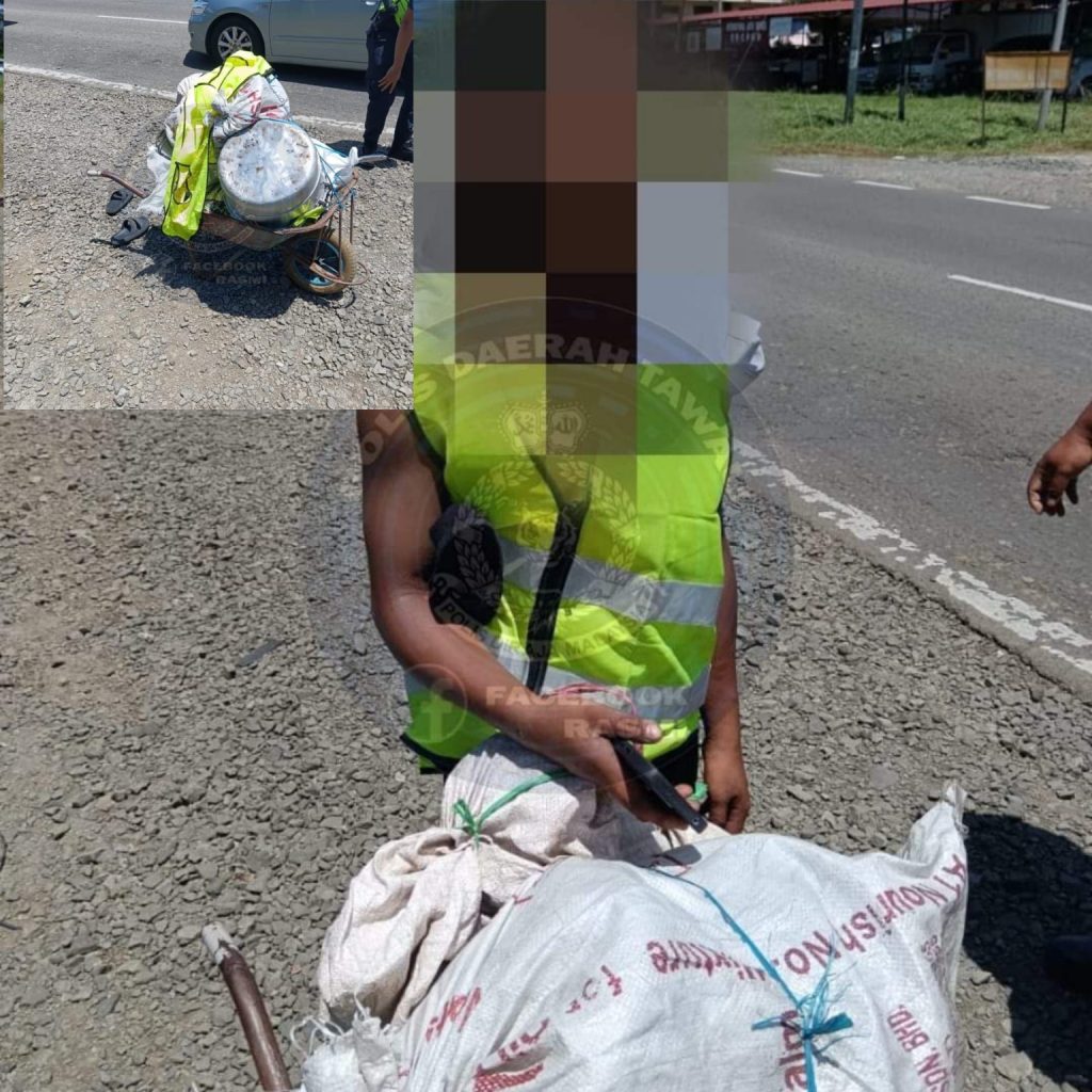 “Dengan bantuan dua lagi unit MPV, polis cuba mengesan dan terserempak dengan suspek di Jalan Bunga Raya, sambil menyorong sebuah kereta sorong dengan muatan beberapa guni.